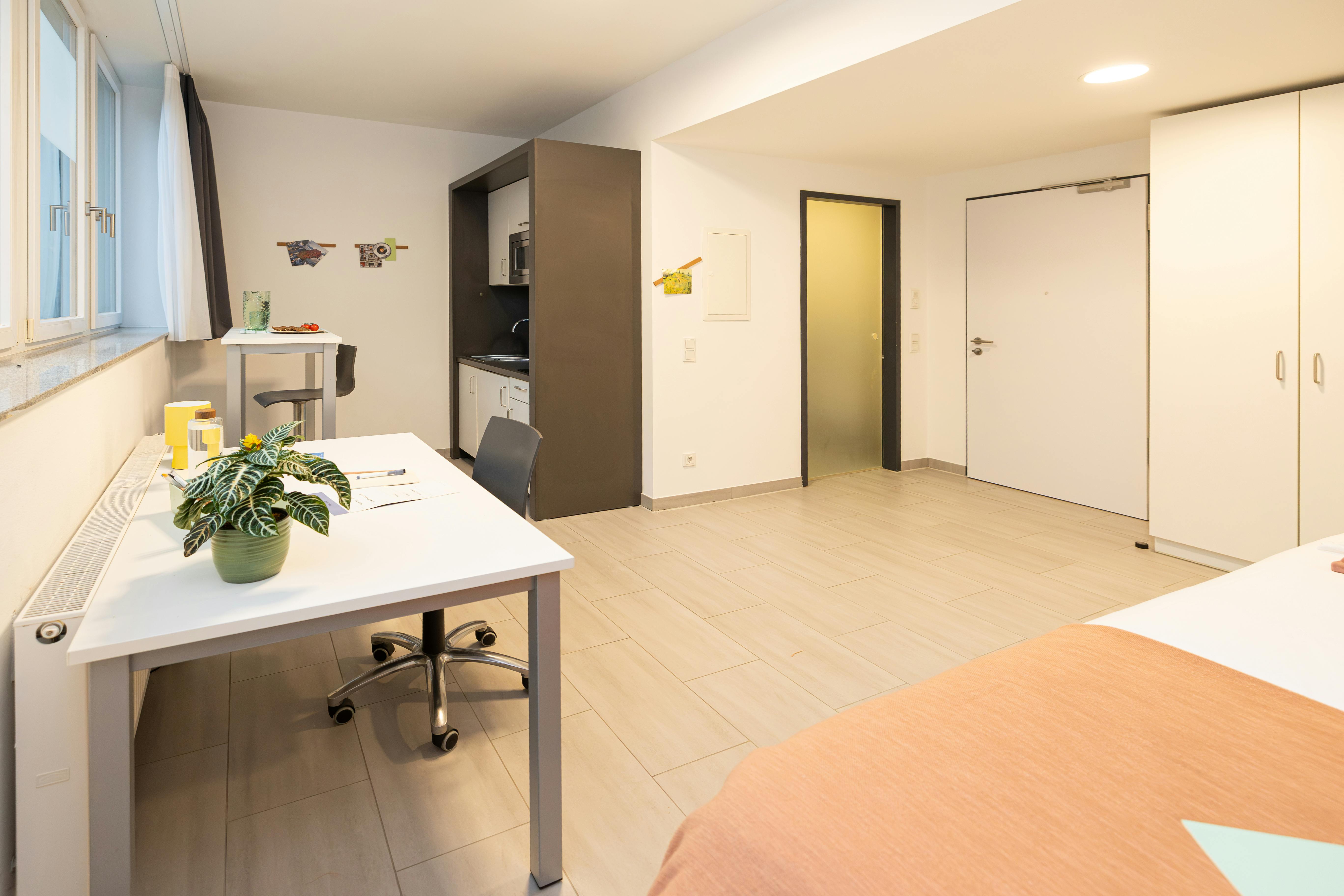 Bitte beachten Sie, dass HousingAnywhere eine Online-Buchungsplattform ist. Daher ist es nicht möglich, Kontaktdaten auszutauschen und Besichtigungen anzubieten. Wenn Sie diese Unterkunft reservieren möchten, senden Sie mir eine Buchungsanfrage oder eine Nachricht! Please note that HousingAnywhere is an online booking platform. Therefore it is not possible to change contact data or do viewings prior to booking. If you want to reserve this place, send me a booking request or a message! Your own self-contained and fully furnished apartment completely fitted out with a bed and mattress, desk and chair, dining table and stool, kitchenette with twin ceramic hobs, microwave, sink and fridge-freezer,...
