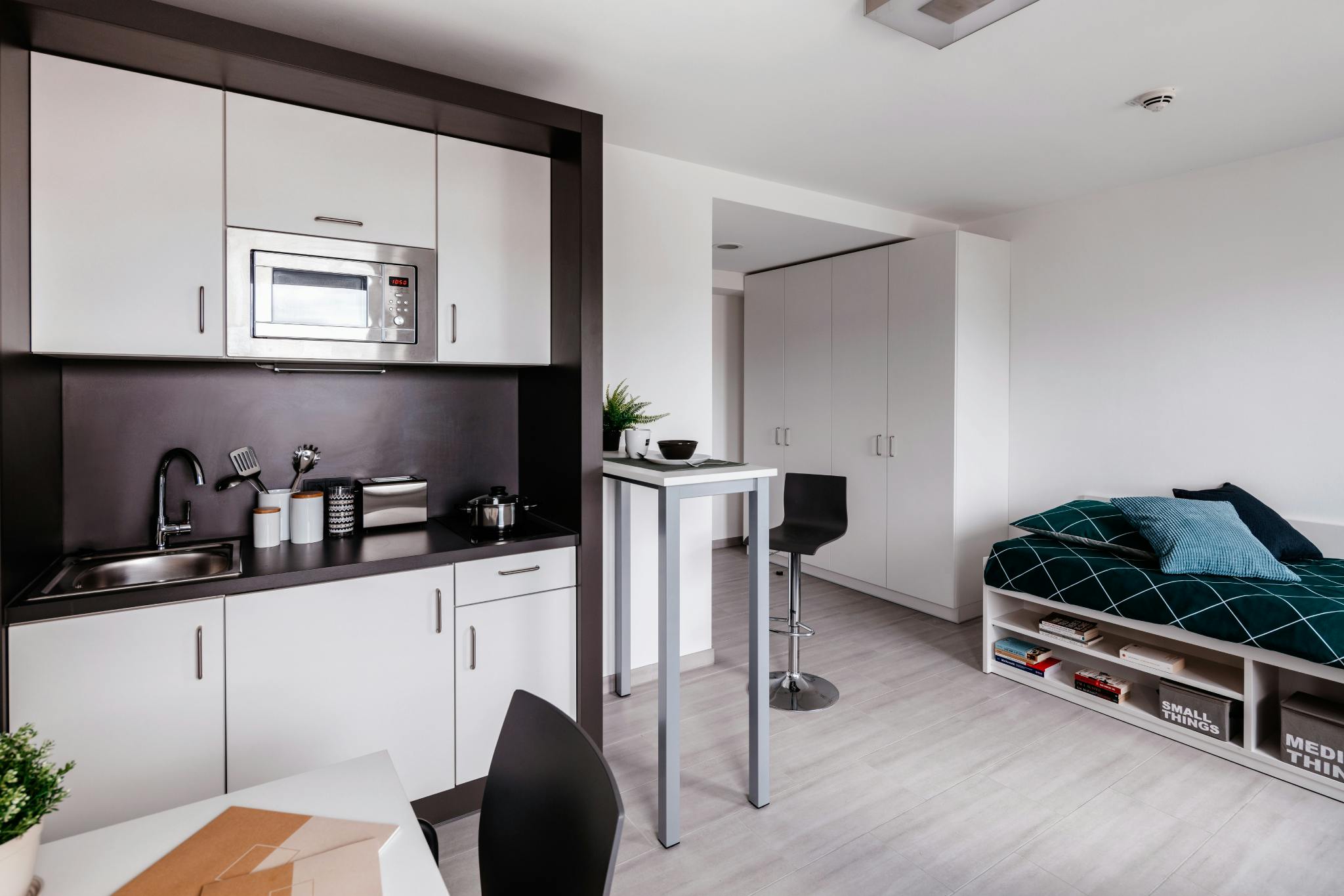 Bitte beachten Sie, dass HousingAnywhere eine Online-Buchungsplattform ist. Daher ist es nicht möglich, Kontaktdaten auszutauschen und Besichtigungen anzubieten. Wenn Sie diese Unterkunft reservieren möchten, senden Sie mir eine Buchungsanfrage oder eine Nachricht! Please note that HousingAnywhere is an online booking platform. Therefore it is not possible to change contact data or do viewings prior to booking. If you want to reserve this place, send me a booking request or a message! Your own self-contained and fully furnished apartment completely fitted out with a bed and mattress, desk and chair, dining table and stool, kitchenette with twin ceramic hobs, microwave, sink and fridge-freezer,...